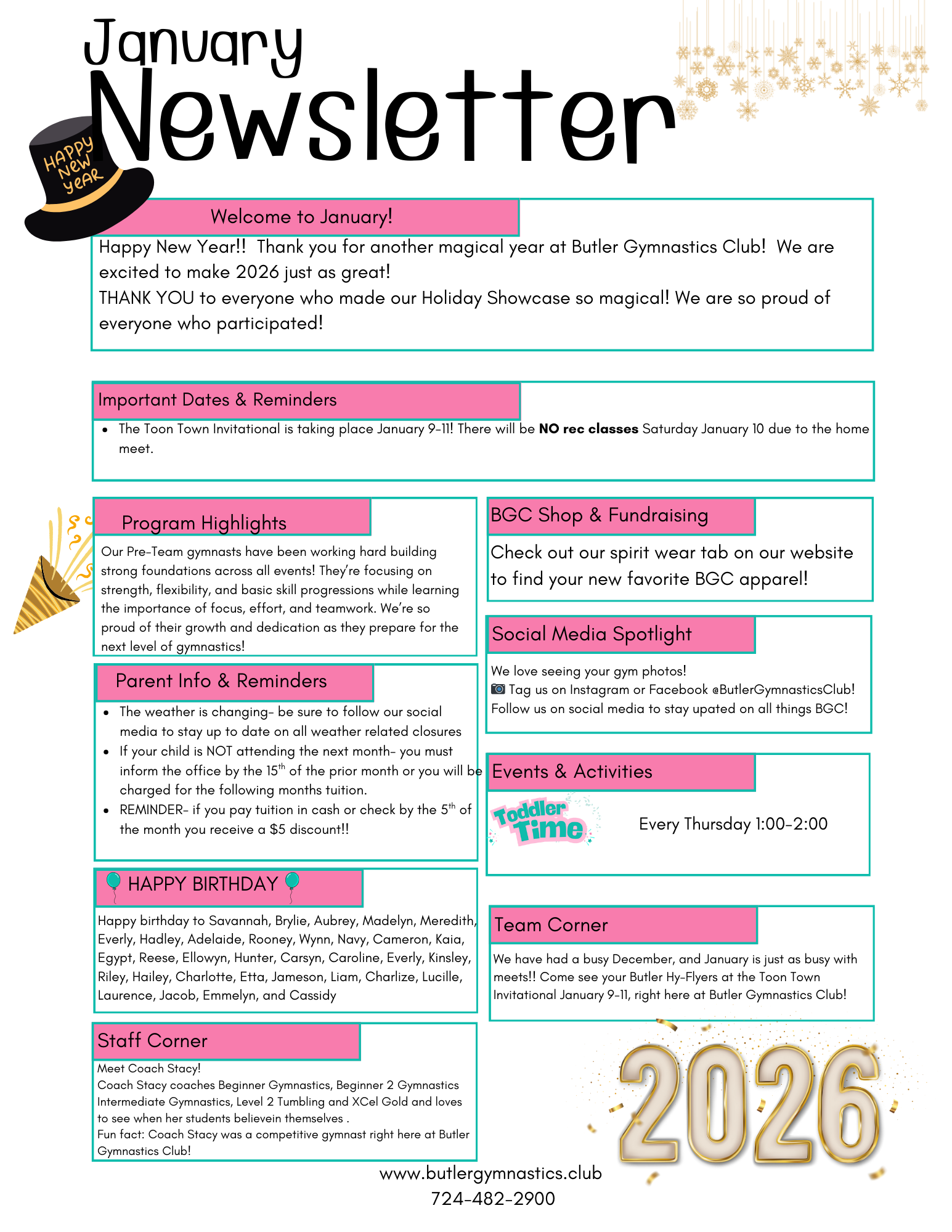 WELCOME TO BUTLER GYMNASTICS CLUB